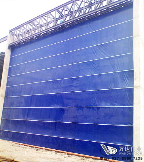 柔性大门是垂直折叠提升的上林电动门,尺寸可依据具体门洞制作,可以拥有独立自我支撑结构,其门板材质为双层聚纤维基布,内嵌突出的钢制圆管抗风条承载基布与强大的风压。